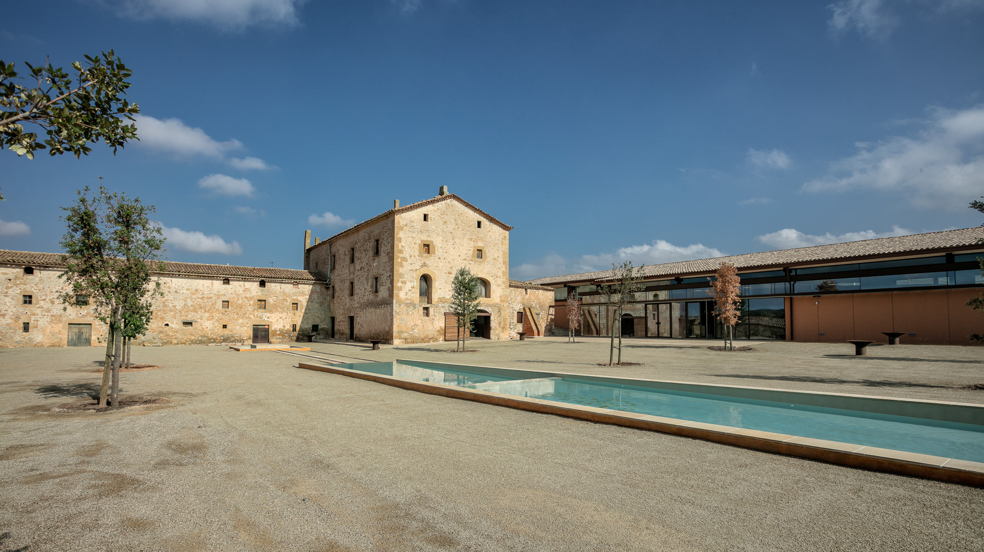 El celler Purgatori s’ha erigit en el recinte de l’històric Mas de l’Aranyó de manera totalment integrada en el seu entorn, preservant l’edifici antic que va fer construir l’Abadia de Montserrat fa dos segles i mig, i realçant la seva història vinícola. I és que el nou edifici, un elegant espai funcional construït amb materials nobles, connecta amb l’antiga cava dels primers residents, sota la vella masia, que també ha estat parcialment rehabilitada per condicionar una gran sala de tast.