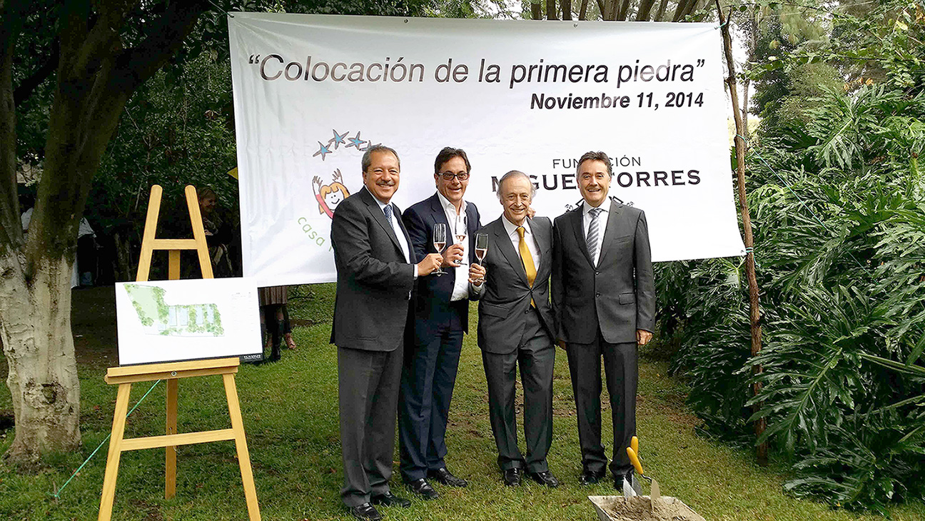 Miguel A. Torres, president de la companyia, ha posat la primera pedra d’aquest nou centre de l’associació mexicana –que ja compta amb dues cases d’acollida a la ciutat de Toluca–, en el que també han participat els socis de Bodega la Negrita, distribuïdor de Torres a Mèxic, Rodolfo González, Guadalupe Carmona, Eduardo Rodríguez i Jaime Cristo. L’acte, celebrat la setmana passada, va reunir unes 60 persones entre autoritats locals, benefactors del projecte i periodistes.