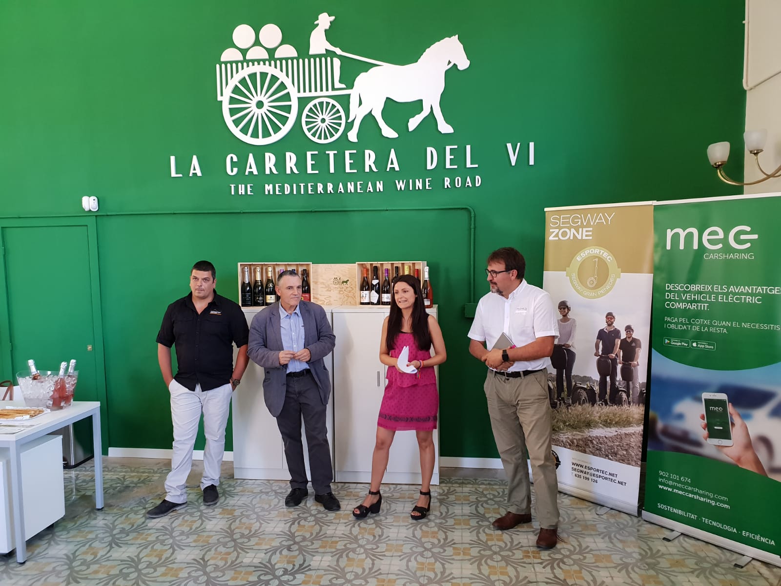 Un dels principals objectius de La Carretera del Vi és potenciar la mobilitat sostenible. És per aquest motiu que ha liderat aquest projecte de la mà de l’empresa MEC Carsharing i Esportec Outdoor Sport. MEC Carsharing ofereix servei accessible de lloguer per hores de cotxes elèctrics reduint així les emissions de CO2 en el territori, oferint alhora més opcions de mobilitat autònoma als turistes i enoturistes. L'efecte dinamitzador d'aquesta iniciativa va més enllà de l'àmbit de l'enoturisme, obrint l'ús d'aquest servei a diferents públics. La presència a l'estació de tren suposa un valor afegit per al servei podent oferir la continuïtat del servei de mobilitat als passatgers del tren, mitjançant vehicle elèctric (cotxe, bicicleta o segway). Segons el seu representant, Joan Nicolás, “aquest projecte és un exemple del que ha de ser l’economia del futur. Una fórmula basada en la col·laboració de diversos actors”. Nicolás ha aplaudit la iniciativa que ha permès cellers, ajuntaments i empreses treballar conjuntament per a fer-la realitat. Actualment, MEC Carsharing ja disposa d'una flota de 12 vehicles elèctrics, i s'aposta clarament per la tecnologia ja que tota l’operativa de reserves del cotxes funciona via aplicació mòbil. Prop de 200 usuaris ja han utilitzat el servei, havent-se produït més de 2000 reserves.